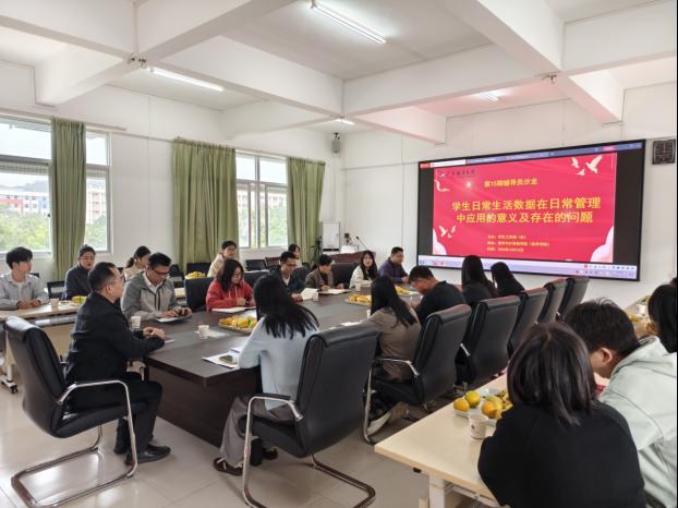 12月12日下午,由我院承办的2024年第15期辅导员沙龙在湖光校区明德楼A座405会议室举行。本次沙龙由我院党委副书记农康主持,以“学生日常生活数据在日常管理中应用的意义及存在的问题”为探讨方向,各学院30余位辅导员参与活动。