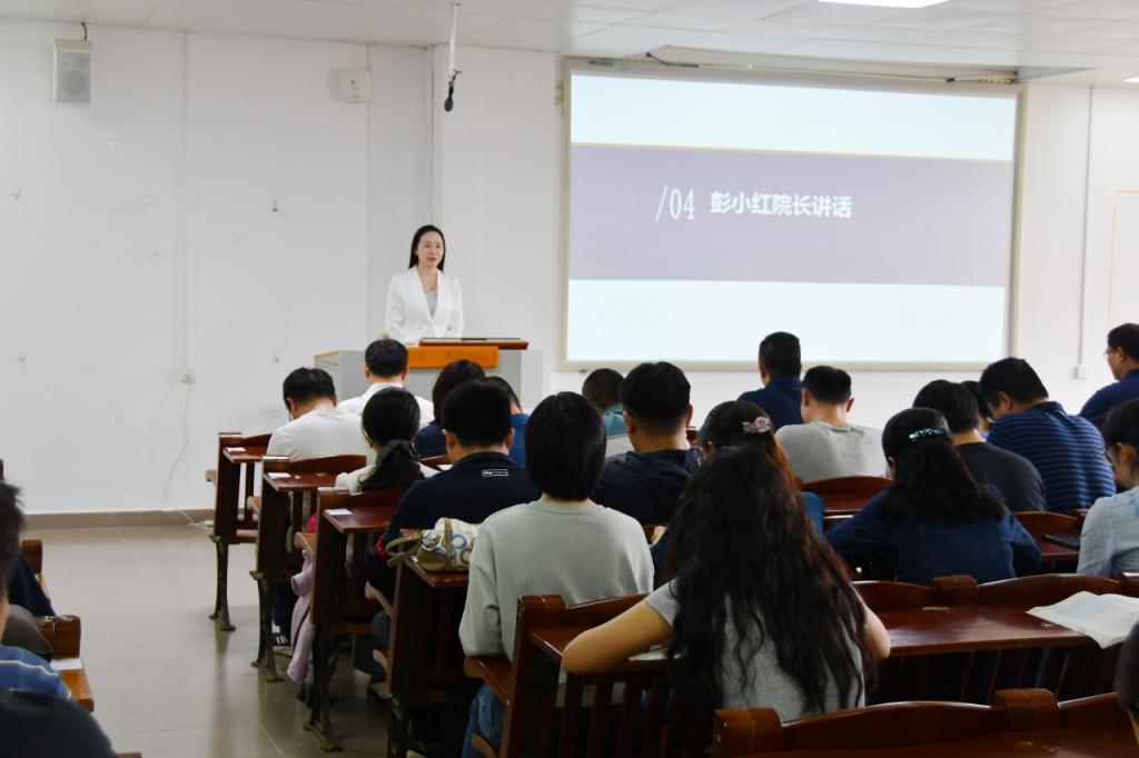 院长彭小红代表学院在总结讲话中提出四点要求:一是构建“学院-教师-学生”三级责任体系,教师要做“经师”更要做“人师”;二是完善“五提升三下降”督导机制,严格落实考勤和学业预警制度;三是深化“以赛促学”工程,依托创新创业基地培育学生创新能力;四是打造“勤学乐学”文化生态,通过主题活动、典型选树营造浓厚氛围。她强调,要以“抓铁有痕、踏石留印”的劲头,推动学风建设取得实效。