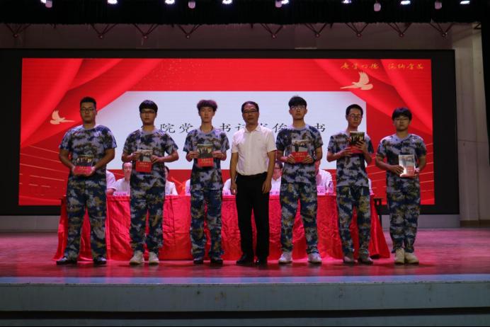 学院党委龙俊书记代表学院党委向新生代表赠送《习近平与大学生朋友们》一书。此举旨在引导青年学子牢记习近平总书记的嘱托,在投身党和人民的共同奋斗中创造更加美好的青春人生,把人生理想融入为实现中华民族伟大复兴中国梦的奋斗中。
