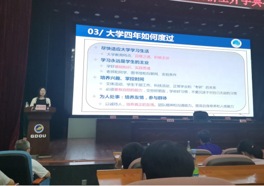 随后,彭小红以《超越自己、成就未来》为题,给同学们讲授了“开学第一课”。她向同学们介绍了学院的发展历程和未来规划,并围绕“大学四年如何度过”向同学们提出了中肯的意见和建议。她分析了大学教育的特点,希望大家把握好自修之道、积极主动尽快适应大学学习生活;她强调学习永远是学生的主业,不仅要学好基础知识,也要实践贯通,有效利用身边的资源,提升学习和动手能力;她建议同学们要培养兴趣、掌控好时间,以学习为中心,积极参加学校和学院各项社会活动和科技活动,养成好的习惯;并呼吁同学们要以诚待人,培养友情、团队精神和沟通能力,不断提升自身修养和人格魅力。