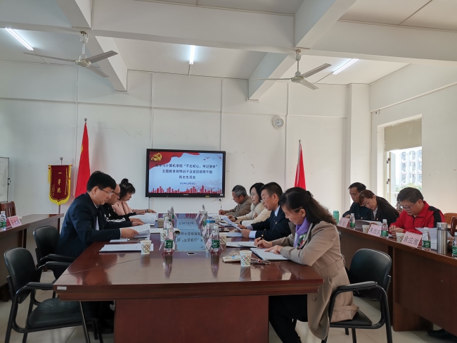 12月10日上午,按照学校党委要求,学院领导班子和党员领导干部“不忘初心、牢记使命”专题民主生活会在湖光校区第二教学楼A1-404室召开。学校党委常委、副校长刘东超和学校主题教育第二督导组组长崔照明、副组长袁仁广、组员关阳到场指导,学院领导班子全体成员、党委委员及各教工党支部书记参加了会议。会议由学院党委书记谢仕义主持。