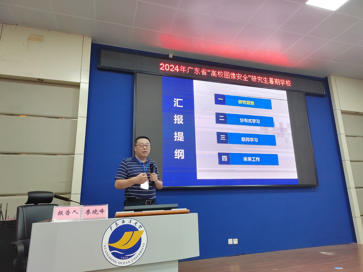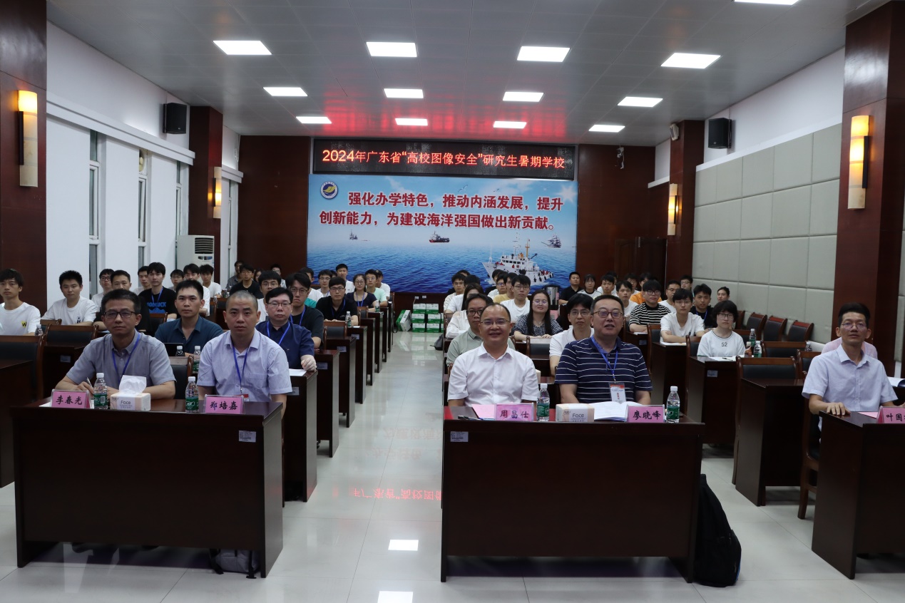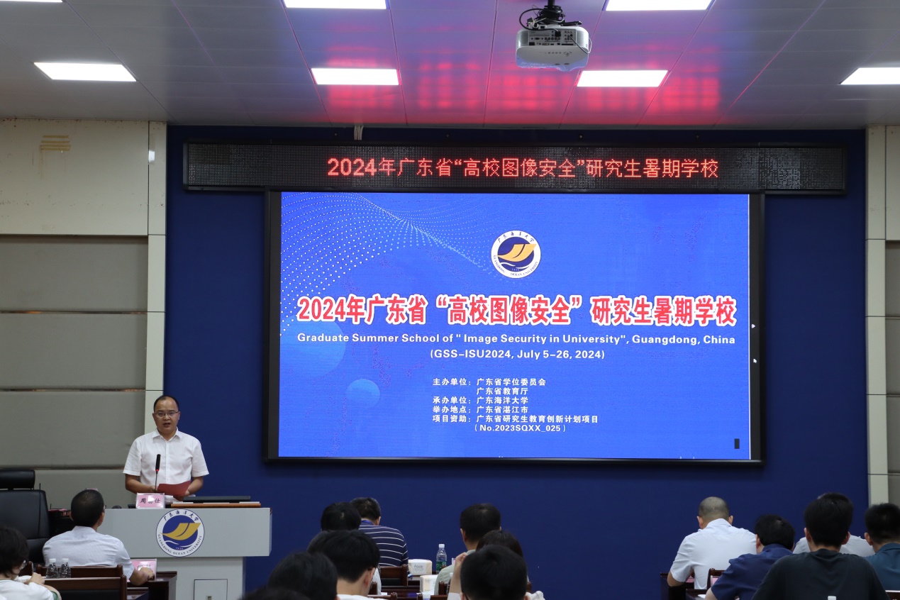 7月6日上午,由广东省学位委员会与广东省教育厅主办,广东海洋大学承办,广东海洋大学william威廉中文官网协办的广东省“高校图像安全”研究生暑期学校在广东海洋大学水生博物馆会议室顺利开幕!我校党委常委、副校长周昌仕教授出席开幕式并致辞,重庆大学二级教授廖晓峰、浙江大学李春光教授、中山大学计算机学院郑培嘉副教授分别作特邀专题报告。开幕式由研究生院院长叶国栋教授主持。