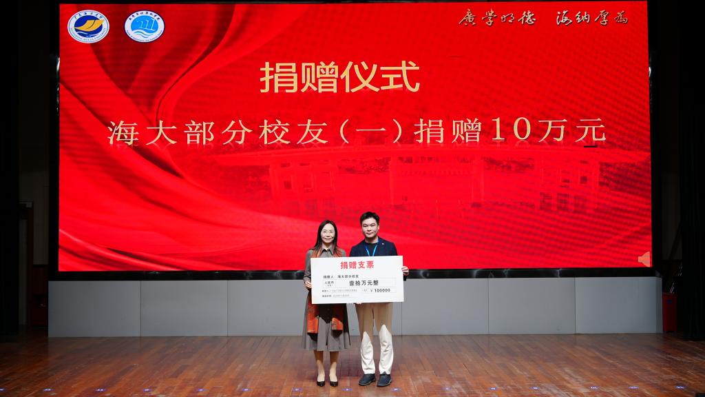 随后举行了企业及校友代表向学院校友会捐赠仪式。邓逢光副校长接受中软国际有限公司教育科技集团捐赠38万元,彭小红会长接受吴宏杨、罗国涛、伍世奇、曾耿滨、陈煜楠等校友代表捐赠共计120万元。合计总捐款达158万元。