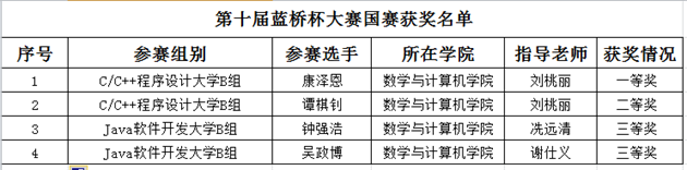 5月26、27日,第十届蓝桥杯全国软件和信息技术人才大赛全国总决赛在北京举办。我院团委书记姚阳带领在省赛中获得一等奖的8名学生赴京参加总决赛。我校学子在比赛中不畏强手,发挥出色并取得优异成绩。在参加的C/C++程序设计大学组、JAVA软件开发大学组、单片机设计与开发组、嵌入式设计与开发组总决赛中,康泽恩、余昊旻获得全国一等奖,谭棋钊获得全国二等奖,吴政博等4位同学获得全国三等奖,黄健明获得全国优秀奖。