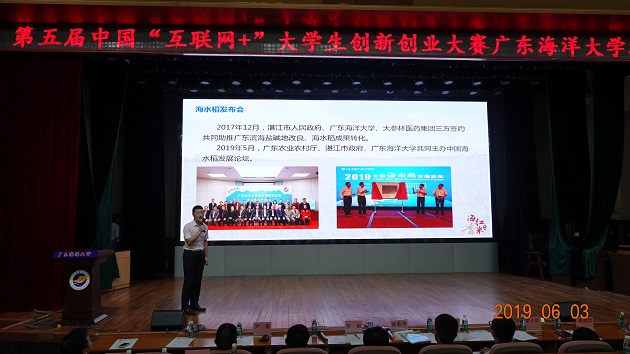 本次“互联网+”大学生创新创业大赛项目是将移动互联网、云计算、大数据、物联网等新一代信息技术与各行业产业精密结合,培育产生基于互联网的新产品、新服务、新业态、新模式,以及推动互联网与教育、金融、交通、社区等深度融合的公共服务创新。在比赛现场,各创业团队通过分析市场背景、介绍商业模式、创新技术等方面对创业项目进行演讲,作为创业大军的新生力量,抒发着自己的创业热情,挥洒着自己的创新历程。他们的精彩演讲不时博得现场嘉宾和观众的阵阵掌声,参赛的项目有:基于深度强化学习与大数据的“汇智Life”app、用于远程监控的“沿海太阳能电池板智能保护及其智能向光控制”、能够对被重金属污染的土壤进行有效治理的“海科麻种植”、有着最新水下智能装备技术的“众跃ROV科技有限公司”、广东海洋大学自主研发的“海红香米”、养殖户的好帮手“智慧养殖机器人”、首创海洋微生物多功能复合肥、创新课堂管理的“图灵智能服务公司”等等,每个项目紧扣着“互联网+”的主题,让我们看到在未来,互联网以不同的方式拓展我们生活的无限可能性,也让我们看到了大学生创业团队的实力。比赛最后,国赛评委张勤涛老师对比赛进行了点评,他肯定了我校各参赛团队的实力,同时指出了各项目在创业实践及远景等方面的不足并给出了改进建议。彭小红院长对大赛进行了总结,她指出本次比赛的参赛作品从创新层面、技术层面,以及应用层面都有了很大的进步,能够充分发挥互联网在海洋、水产、能源、农业等多方领域的信息化和智能化的应用。同时也希望同学们勇于创新创业,继续开拓进取。比赛结束后,嘉宾们与各团队以及现场人员进行了合影留念。