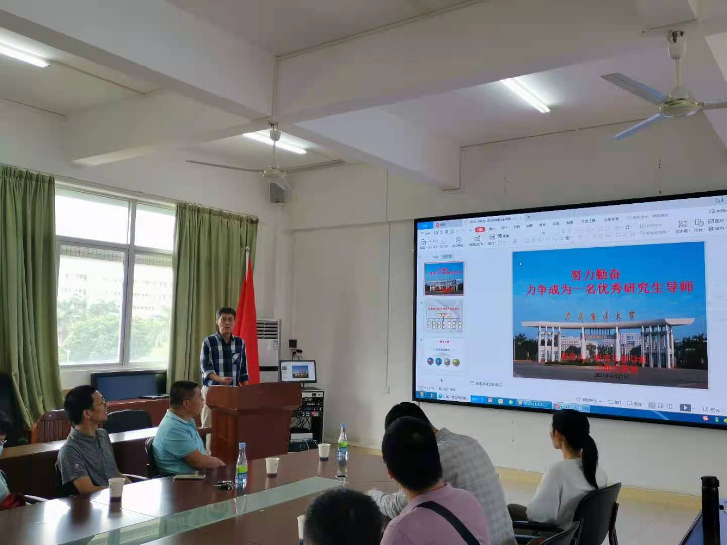 为了加强学院研究生教育工作,4月21日下午,我院邀请学校研究生教学督导组组长王维民教授在第二教学楼A1-405为全体研究生导师、近两年有意向申请硕士生导师资格的老师做了题为《努力勤奋、力争成为一名优秀研究生导师》的专题报告,报告由学院院长彭小红教授主持。