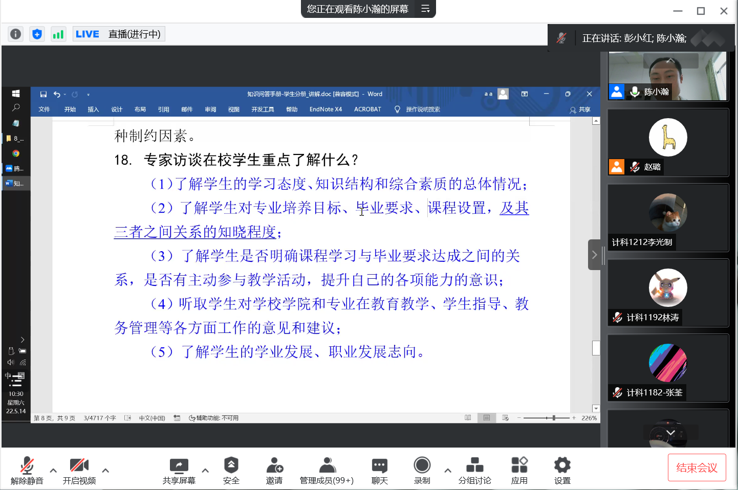 为迎接教育部工程教育专业认证专家进校考查,强化学生主动参与意识,营造积极氛围,5月14日上午,william威廉中文官网在腾讯会议室开展计算机专业学生专项培训会。会议由计算机专业认证核心组成员陈小瀚主讲,学院党委书记谢仕义、院长彭小红、党委副书记周荣伟、计科系主任余应淮、分管辅导员及计算机专业学生共550余人参加。